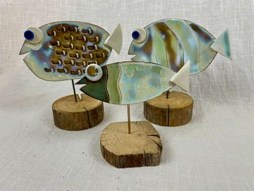 These fish are mounted on cut and finished old fence posts. Each fish is unique and individual. Fish shown here are not my current stock. Please contact me to see what I currently have available.