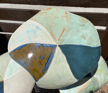 Art and creative pieces should be all around the home. The following pieces are made from a strong stoneware clay and can withstand harsh outdoor conditions year round. Snow, sun, wind, hail, nor hot and cold temperatures will not effect these pieces. Since it is pottery there will never be any fading either. Just don't throw rocks at them, ouch!